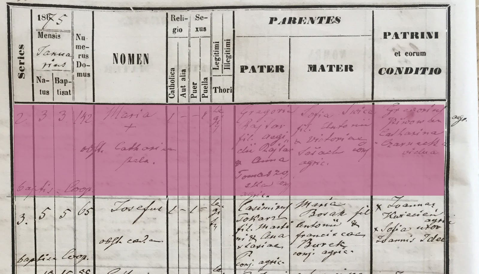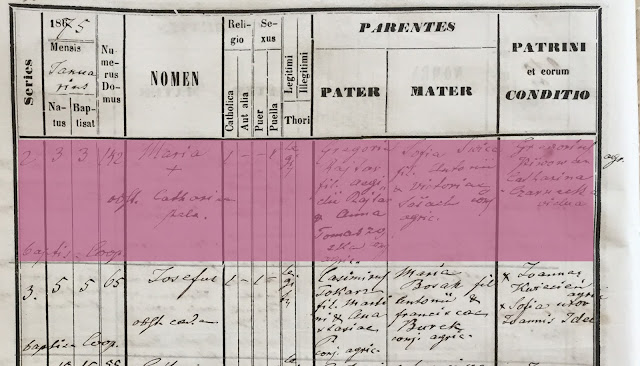 Dans le dénombrement de population de 1876, on constate que si Marie habite bien chez ses parents, à quatre ans, on en attendait pas moins, ce n'est pourtant pas le cas de son jumeau qui est on ne sait où, certainement placé en nourrice quelque part (3), tandis que justement, la famille s'occupe d'un enfant assisté...(4)