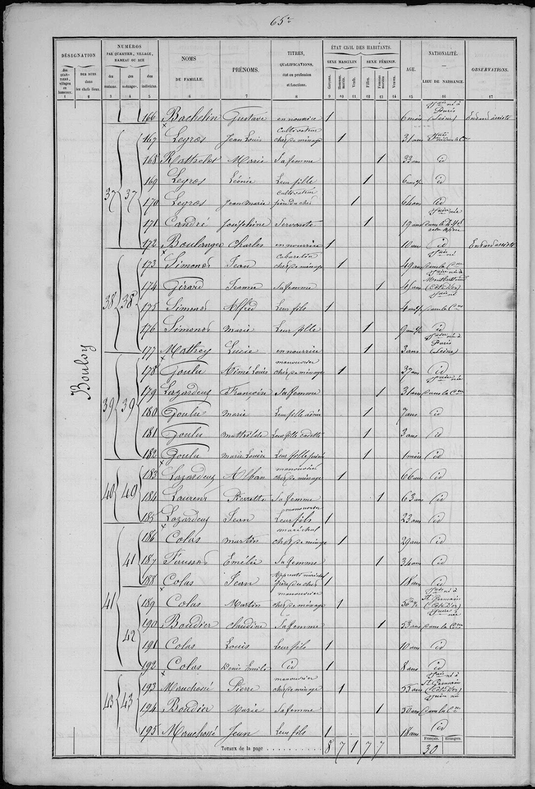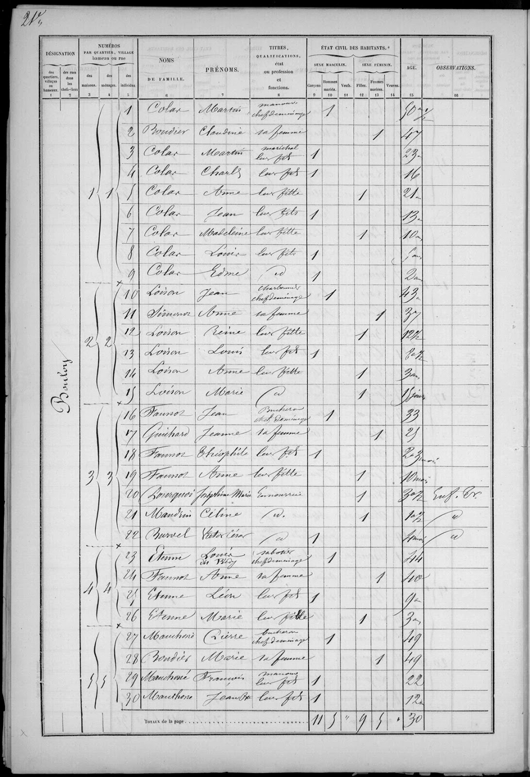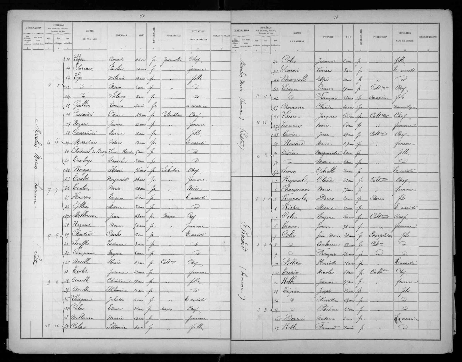 Les recensements suivants sont similaires jusqu'à arriver en 1896 : le premier dénombrement de population suite au mariage d'Edme & Marie dans lequel on constate qu'ils ont déjà deux enfants et la charge d'une enfant assistée.